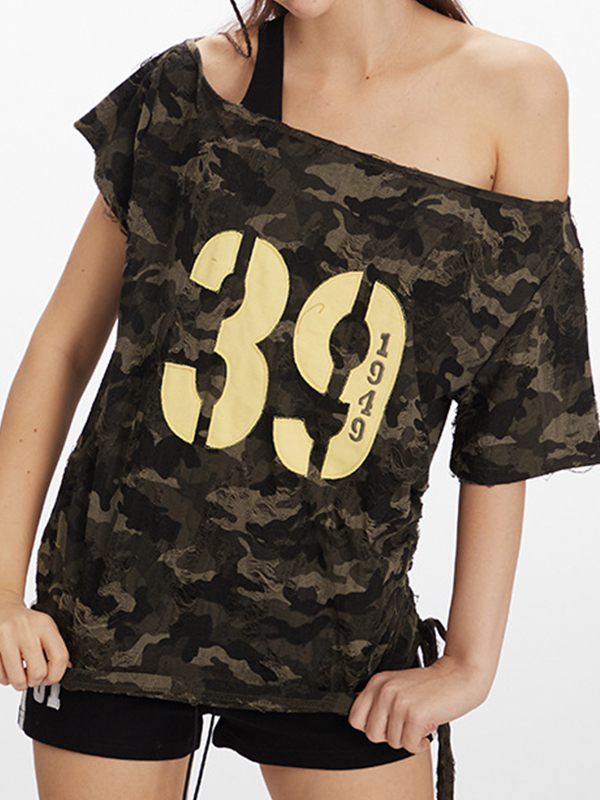 Oversize-T-Shirt mit One-Shoulder-T-Shirt und kurzen Ärmeln