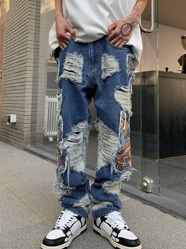 Lose Herrenjeans mit zerrissenem Stickerei-Patch