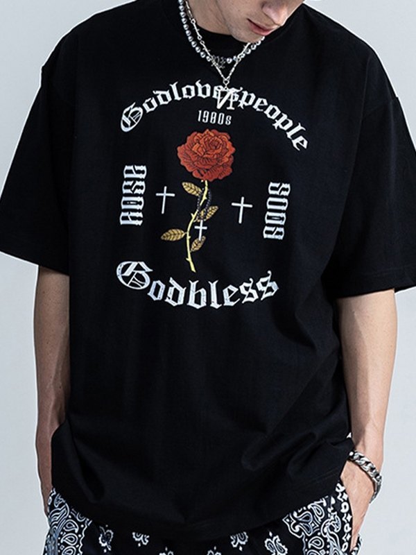 Kurzärmliges Grafik-T-Shirt mit gotischem Blumenmuster für Herren