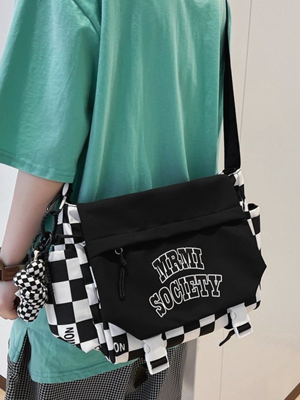 Umhängetasche aus kariertem Nylon mit Schnallenriemen