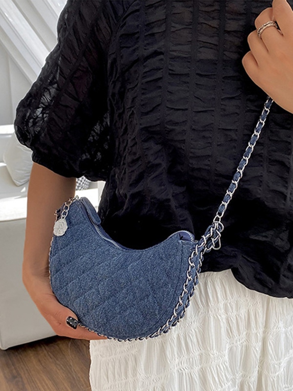 Denim-Rhombus-Ketten-Umhängetasche