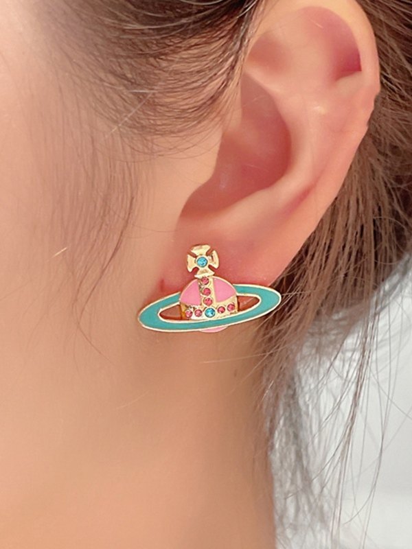 Emaille Strass Saturn Charm Ohrringe