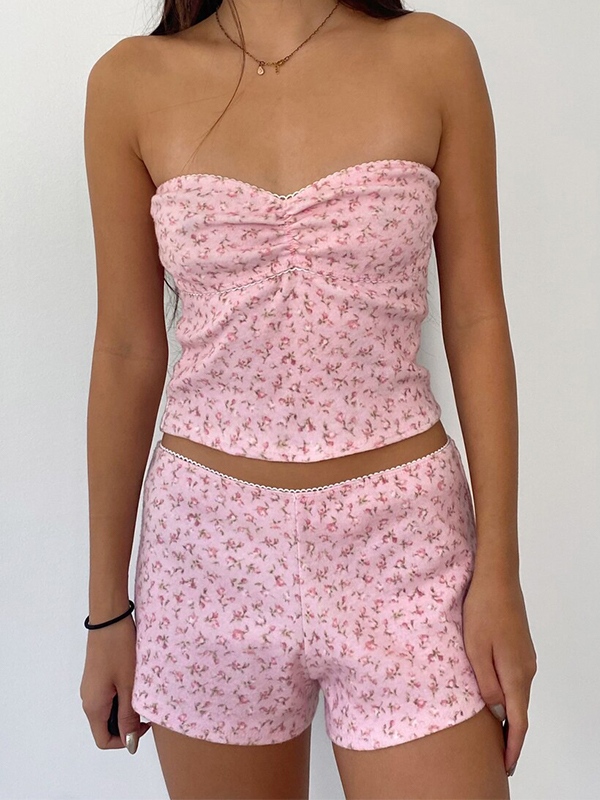 Zweiteilige Bandeau-Top-Shorts mit Vintage-Print
