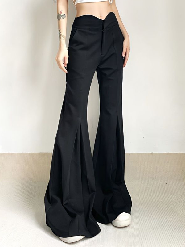 Hose mit gekerbtem Bund und plissiertem, ausgestelltem Bein und hohem Bund