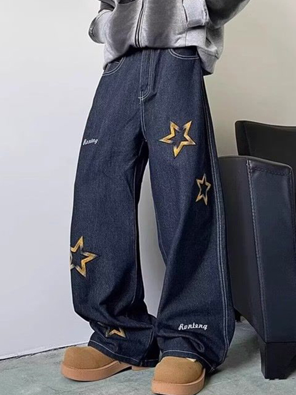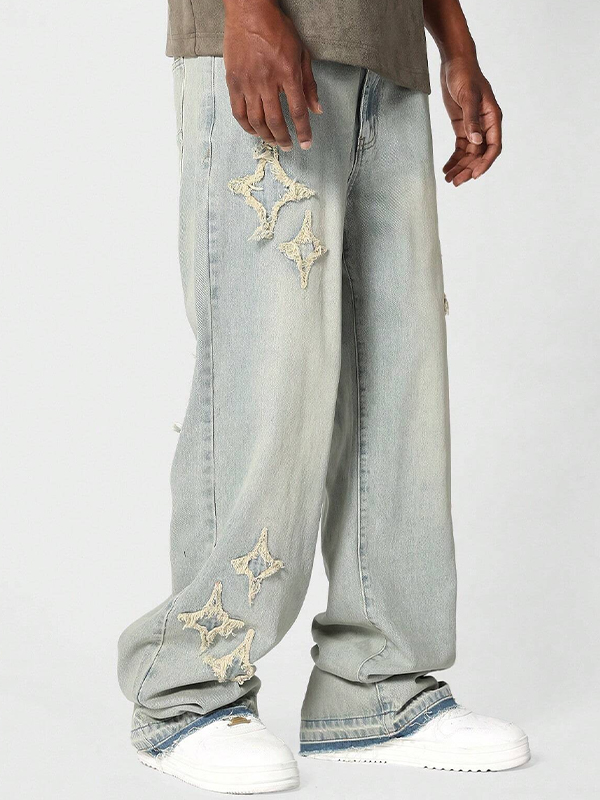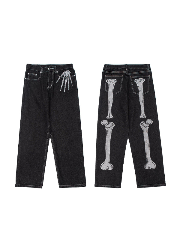 Lose Herrenjeans mit Skelettmuster und Nahtdetail