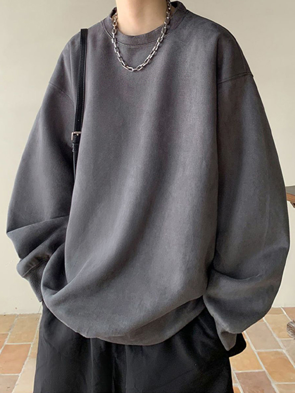 Herren-T-Shirt aus einfarbigem Wildleder mit langen Ärmeln