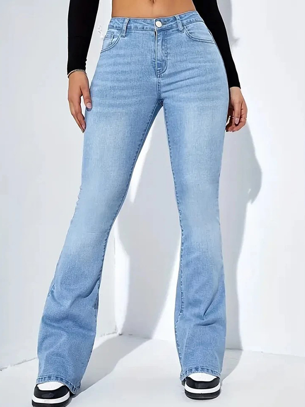 Schlagjeans mit Blumenmuster und Perlenstickerei