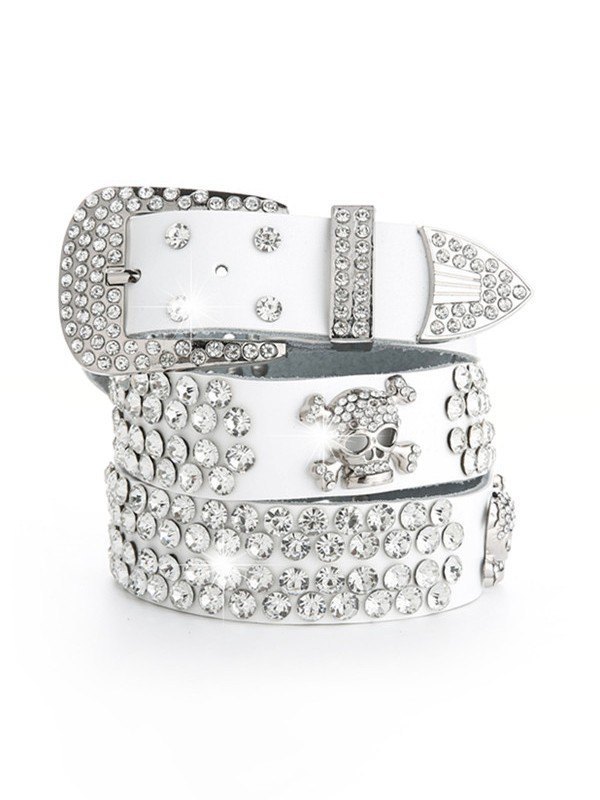 Gürtel mit Strass-Totenkopfschnalle