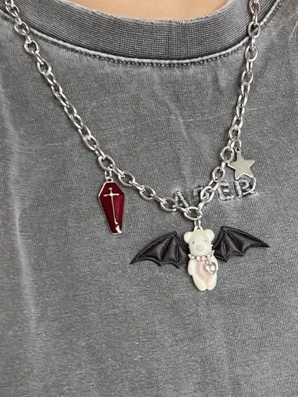 Gotische geflügelte Bären-Anhänger-Halskette