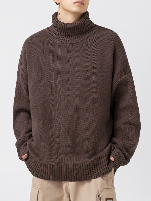 Einfarbiger Pullover mit hohem Kragen und lockerem Lazy-Style