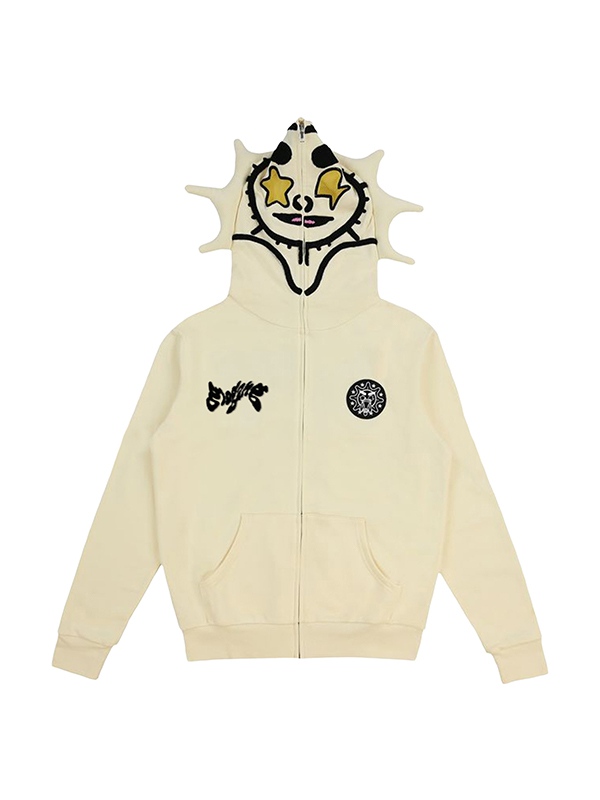 Übergroßer Kapuzenpullover für Herren mit lustigem Aufdruck und Reißverschluss