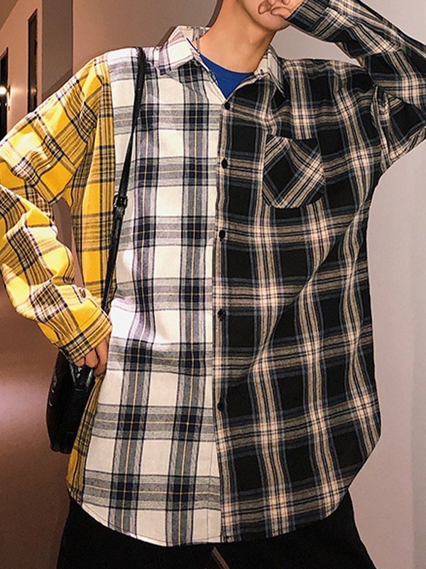 Kariertes Langarmhemd für Herren mit Farbblock