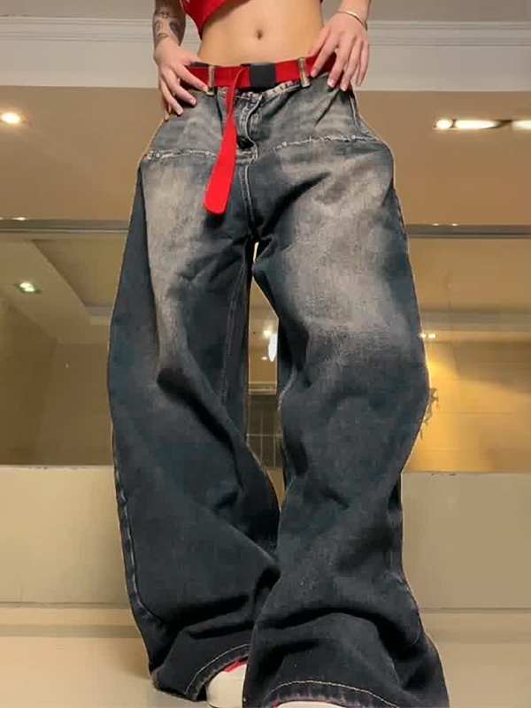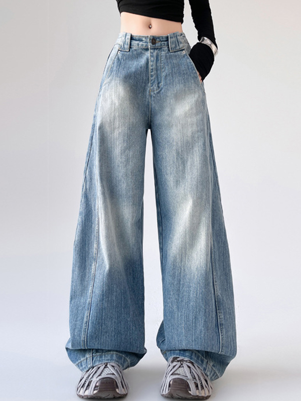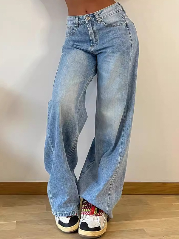 Vintage ausgewaschene Boyfriend-Jeans im Used-Look