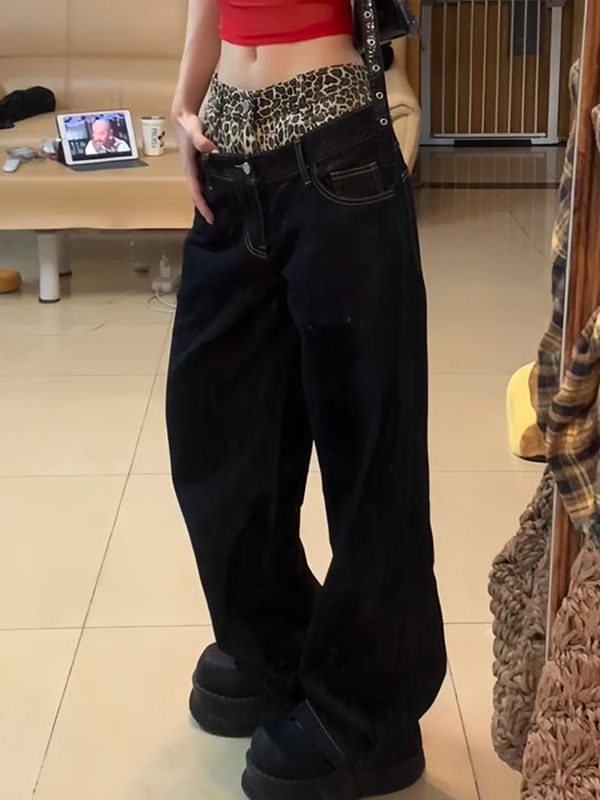 American Retro Boyfriendjeans mit Leopardenmuster und Nähten