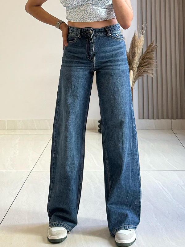Lockere Boyfriendjeans mit weitem Bein und geradem Bein