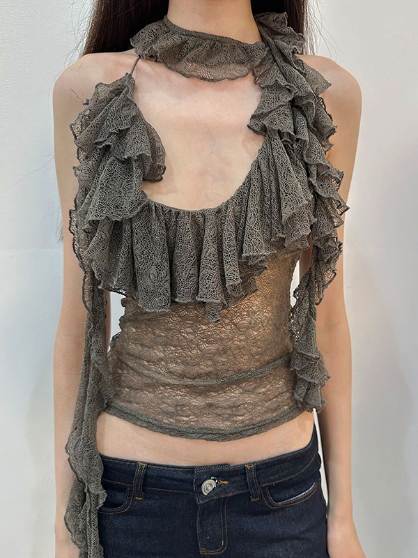 Zweifarbige Neckholder-Weste aus Spitze