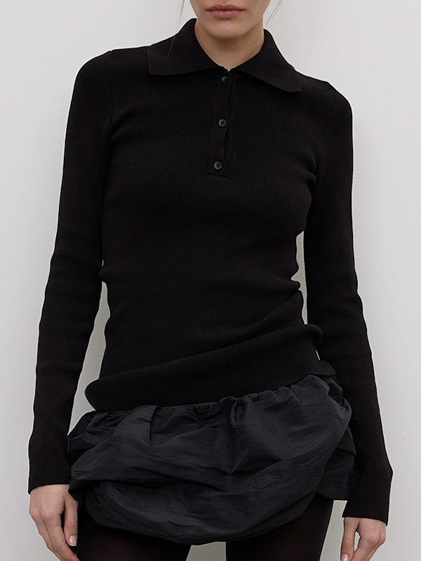Einfarbige Strickwaren mit Revers und langen Ärmeln