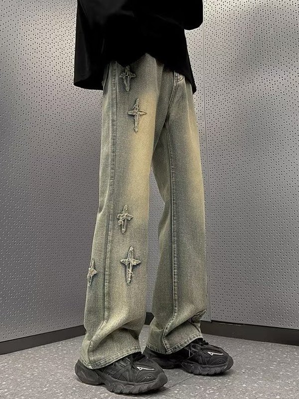 Herren-Jeans mit Vintage-Waschung und Splice-Motiv
