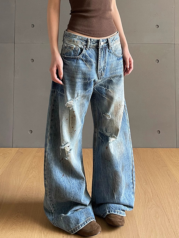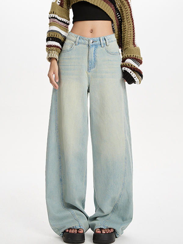 Vintage ausgewaschene Boyfriend-Jeans im Used-Look