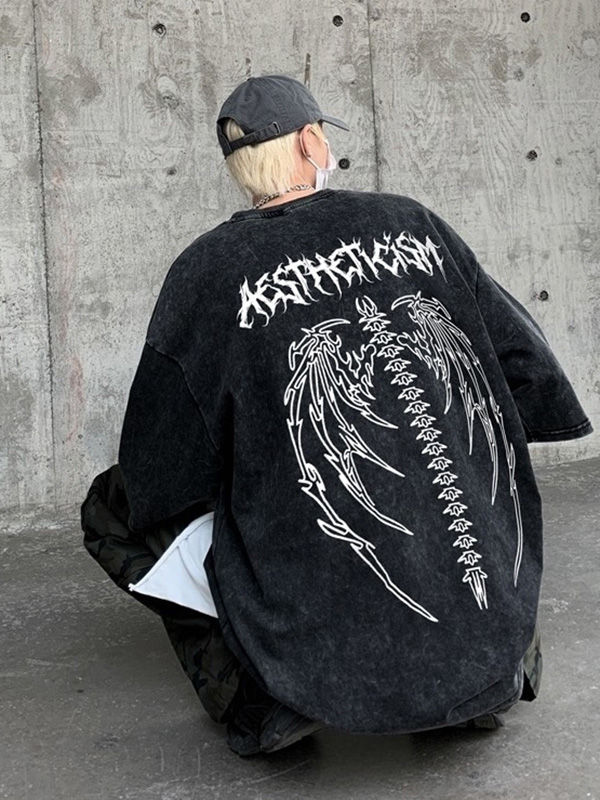 Oversize-Kurzarm-T-Shirt mit Flügel-Print für Herren