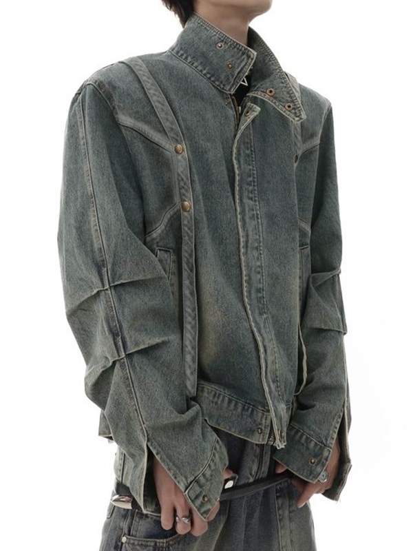 Kurze Jeansjacke für Herren mit verwaschenem Faltenkragen und Kragen