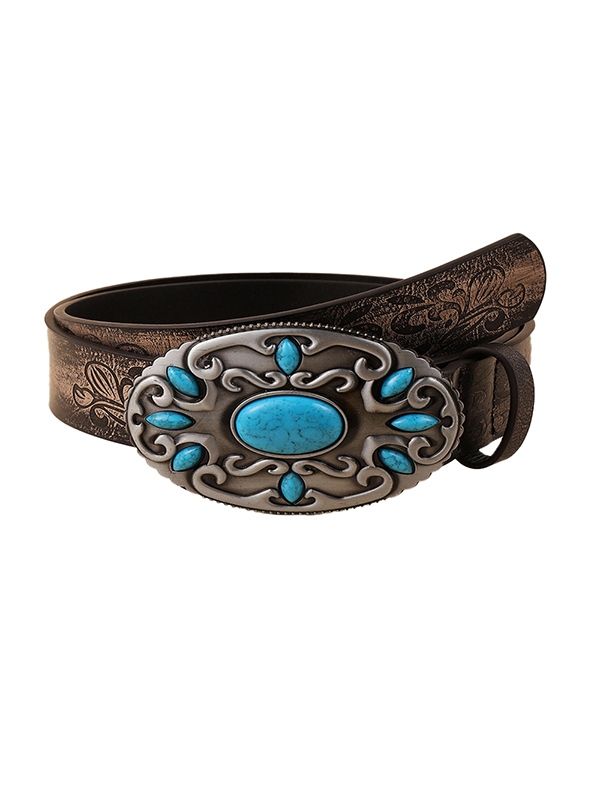 Gürtel mit Stammes-Gravur und blauer Schnalle mit Edelsteindekor