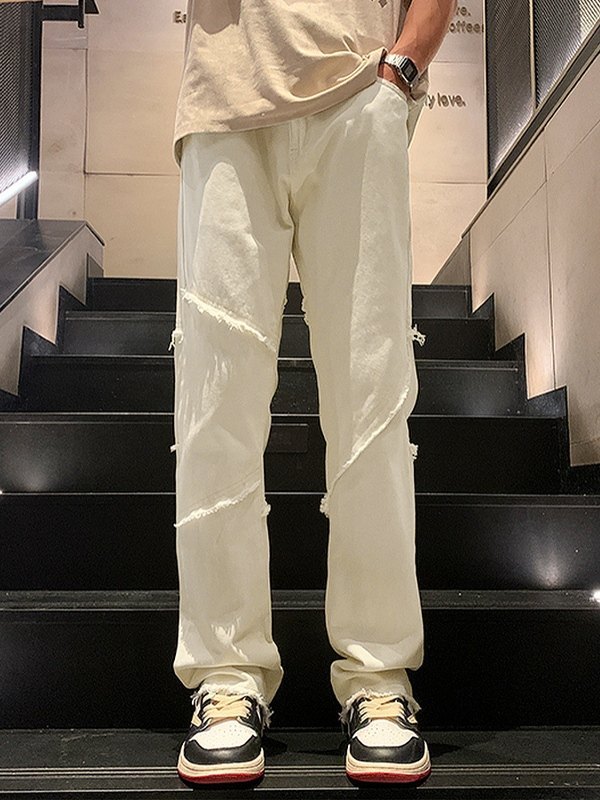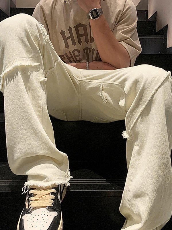 Einzigartiges Design: Die ausgefransten weißen Jeans mit geradem Bein haben ein einzigartiges und stilvolles Design, das sie von traditionellen Jeans unterscheidet .