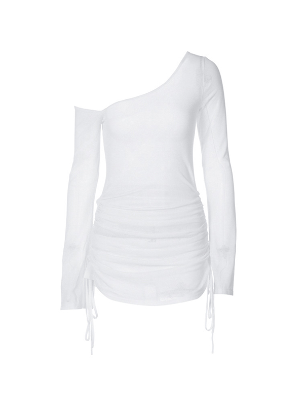 Durchsichtiges Minikleid mit gerüschter Schulterpartie und Kordelzug