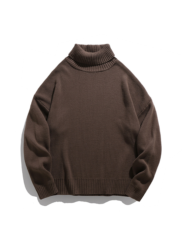 Einfarbiger Pullover mit hohem Kragen und lockerem Lazy-Style