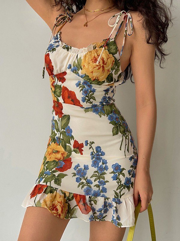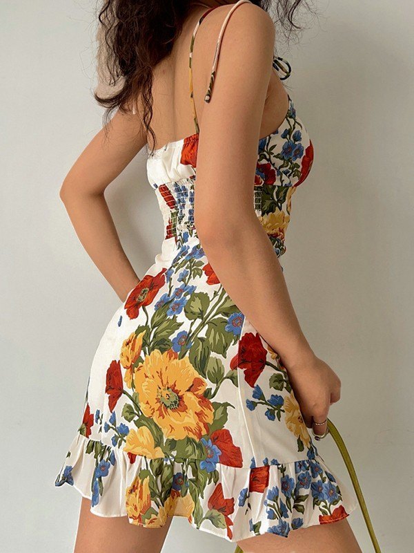 Beschreibung: Dieses Minikleid ist perfekt für den Sommer oder den Sommerurlaub und muss ein perfektes Kleidungsstück sein. Es hat einen zufälligen Blumendruck durch den Körper, einen Rüschenausschnitt, verstellbare Schultergurte und einen Rüschensaum. Mit gesmoktem Rücken für bequemen Stretch.