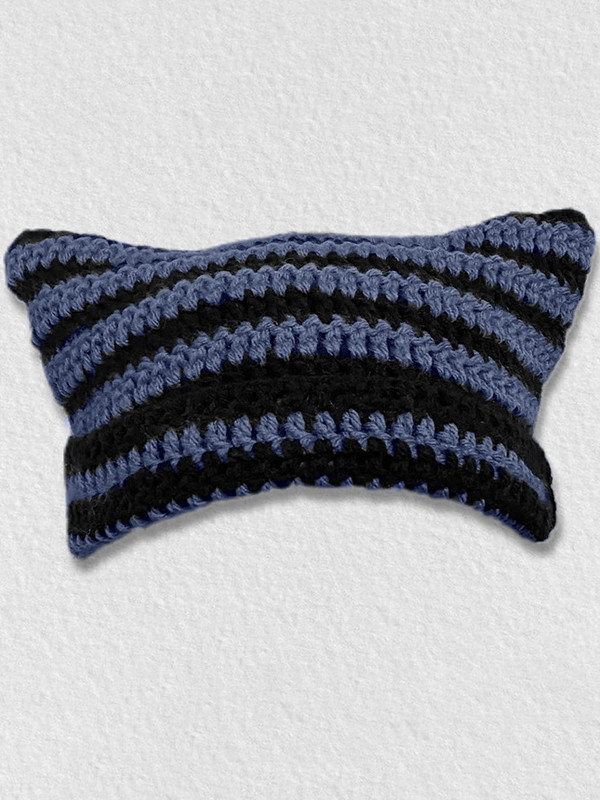 Handgefertigte gestreifte Strickmütze mit Horndetail
