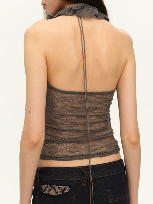 Zweifarbige Neckholder-Weste aus Spitze
