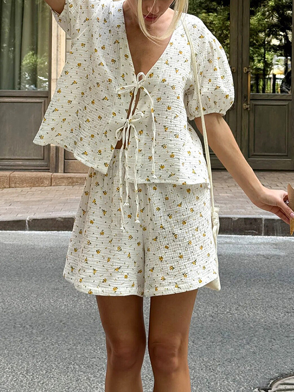 Zweiteiler mit gebundenen Puffärmeln
