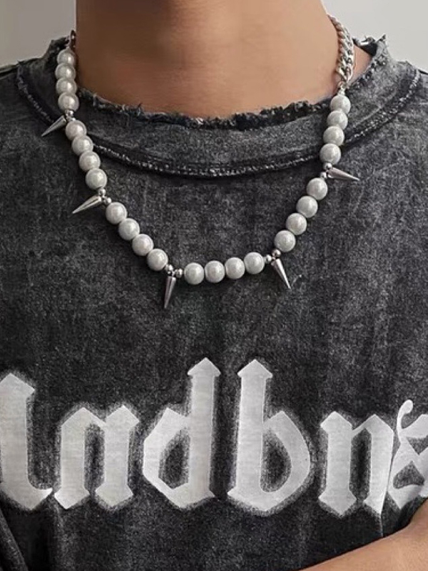 Herren-Punk-Halskette mit Kunstperlen-Ohrstecker und Splice-Anhänger
