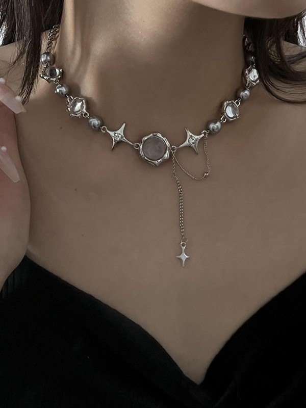 Stern-Charm-Korn-Faux-Perlen-Halskette