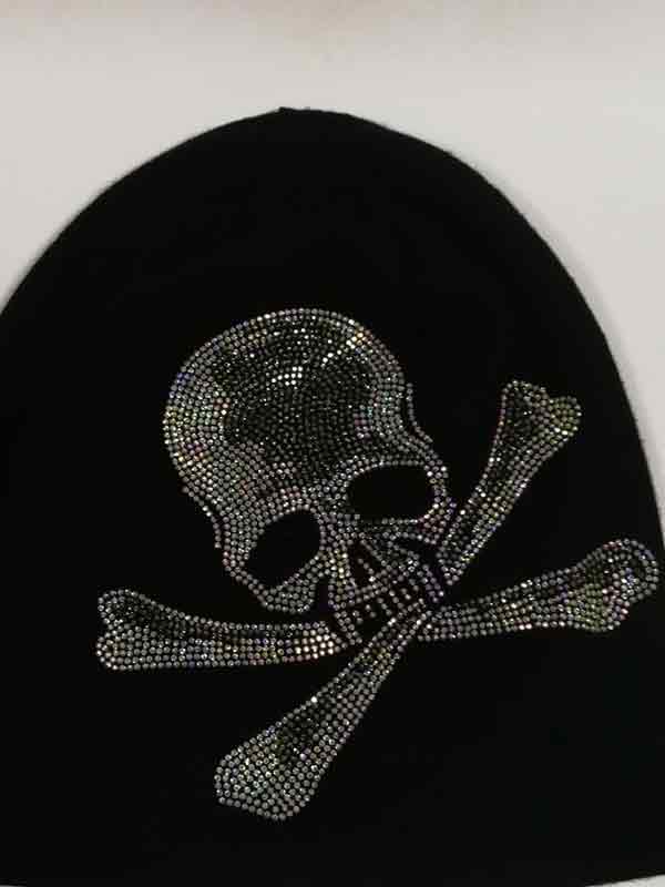 Beanie-Mütze aus Fleece mit Totenkopf-Strassdekor