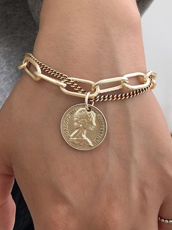 Doppellagiges Knebelarmband mit Münzanhänger