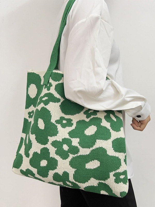 Jacquard-Stricktasche mit Blumenmuster