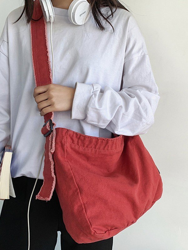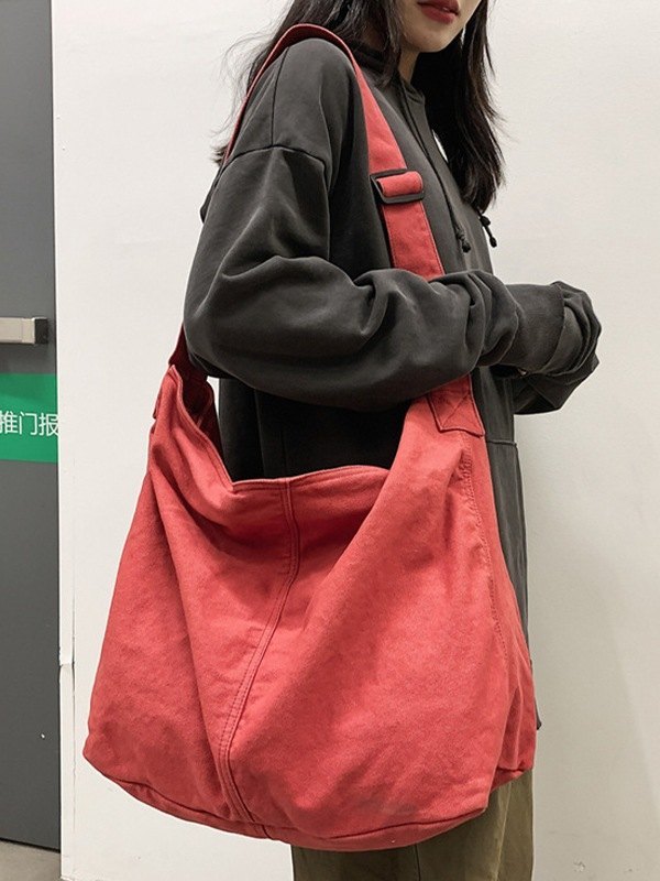 Gewaschene große Canvas-Umhängetasche
