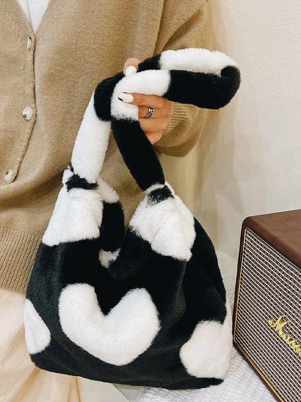 Fuzzy-Schultertasche mit Herzmuster