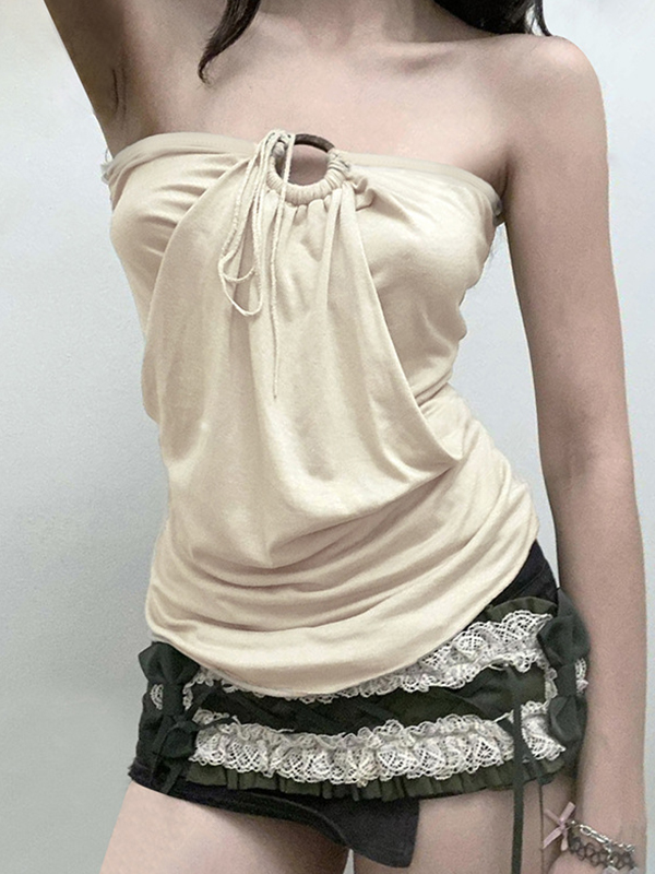Bandeau-Top mit kreisförmiger Schnürung und Plissee-Design
