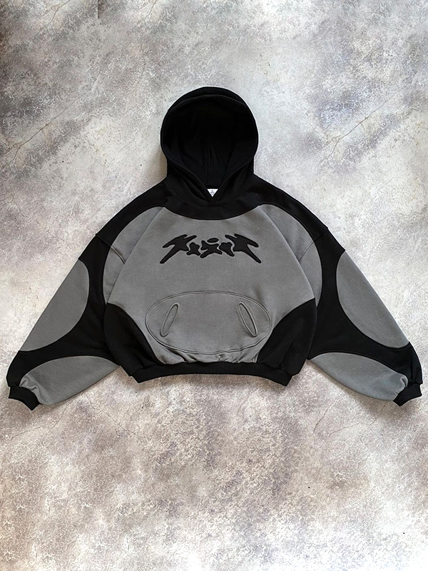Flauschiger, übergroßer Kapuzenpullover mit Cartoon-Geist-Stickerei