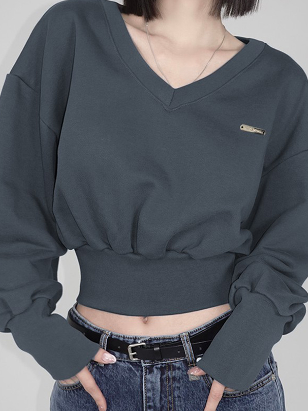 Einfarbige, einfache Sweatshirts mit V-Ausschnitt