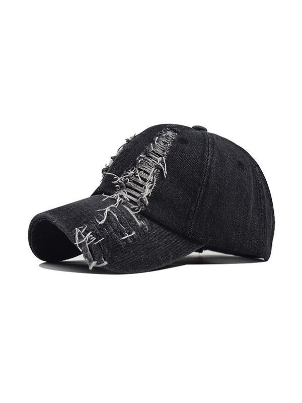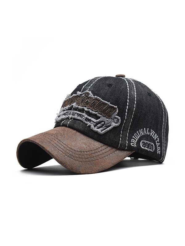 Mit Buchstaben bestickte Distressed-Denim-Baseballkappe