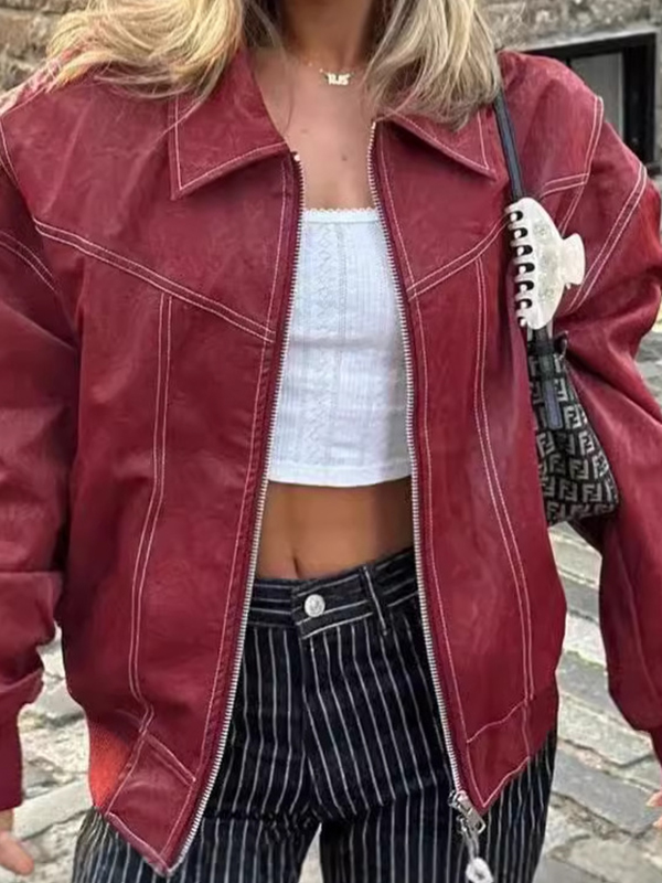 Retro Streetstyle Kapuzenjacke mit Fellkragen und Patchworkdetails
