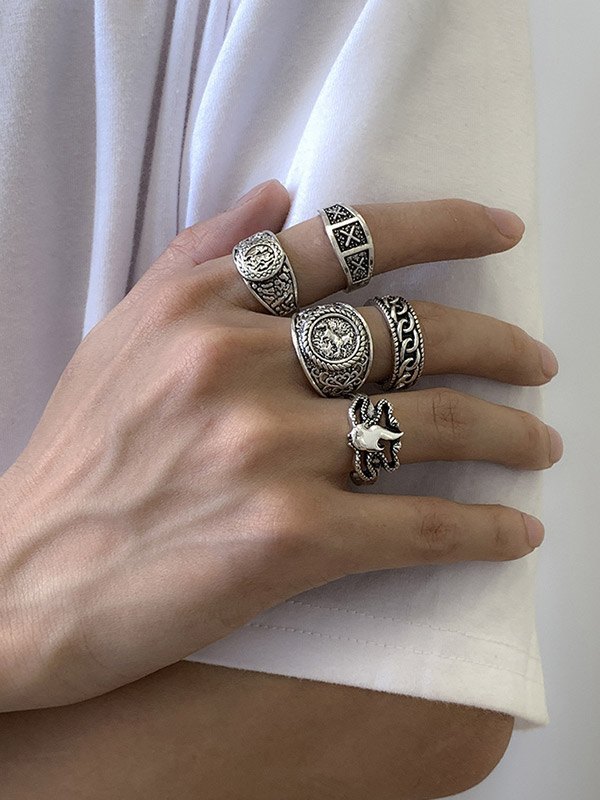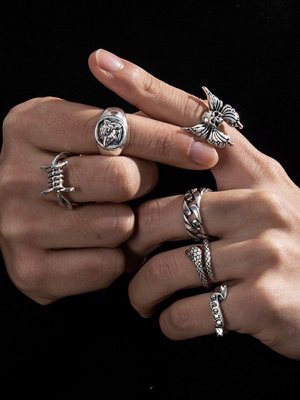 6-teiliges Vintage-Punk-Ring-Set für Herren