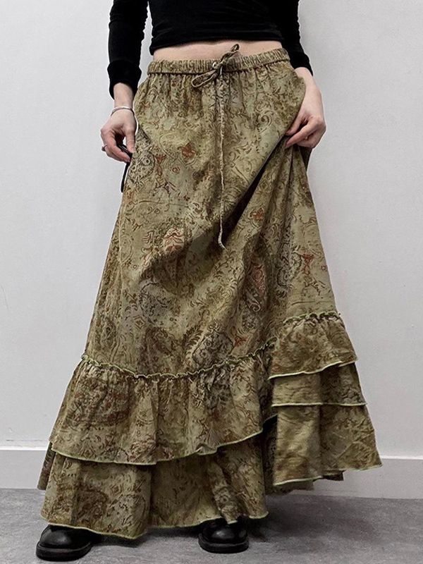 Französischer Maxirock mit kleinem, frischem Blumendruck
