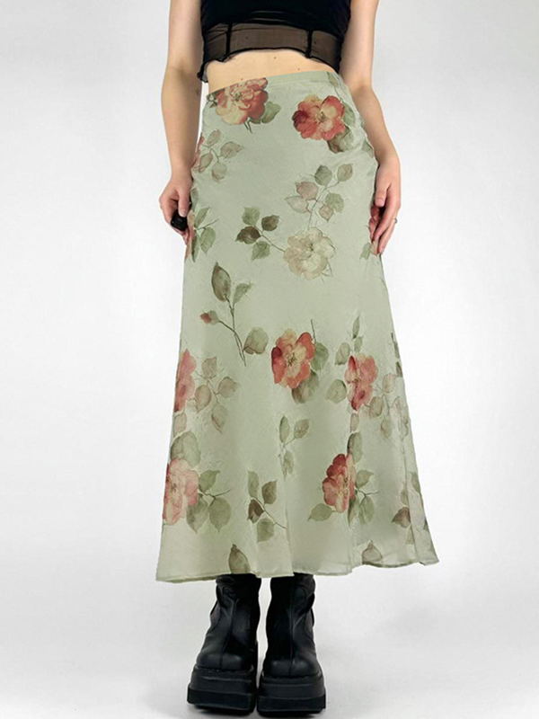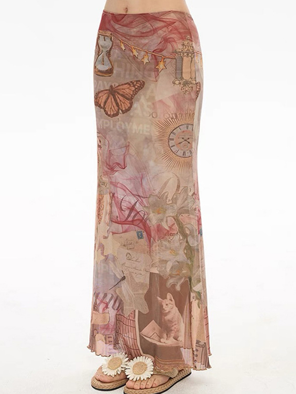 Maxirock aus Netzstoff im Vintage-Stil mit Blumenmuster