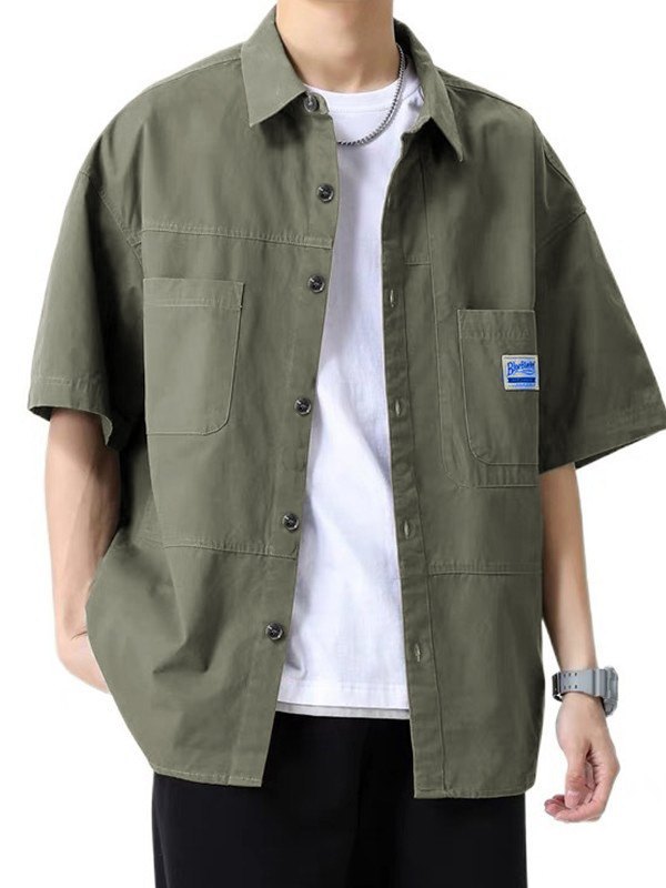 Lässige Kurzarm-Taschendekoration im japanischen Stil