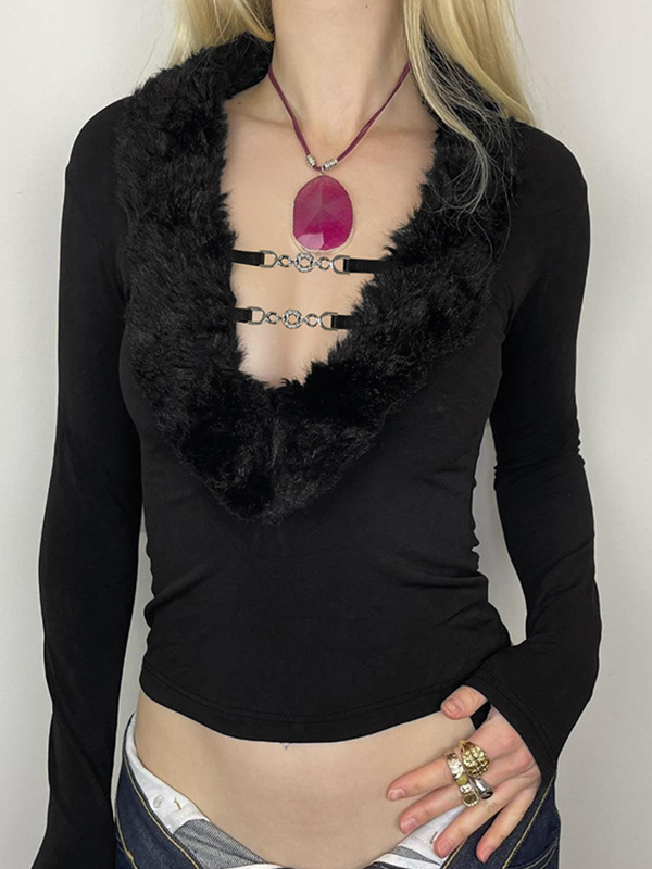 Einfarbiger Neckholder-Langarmstrick mit V-Ausschnitt